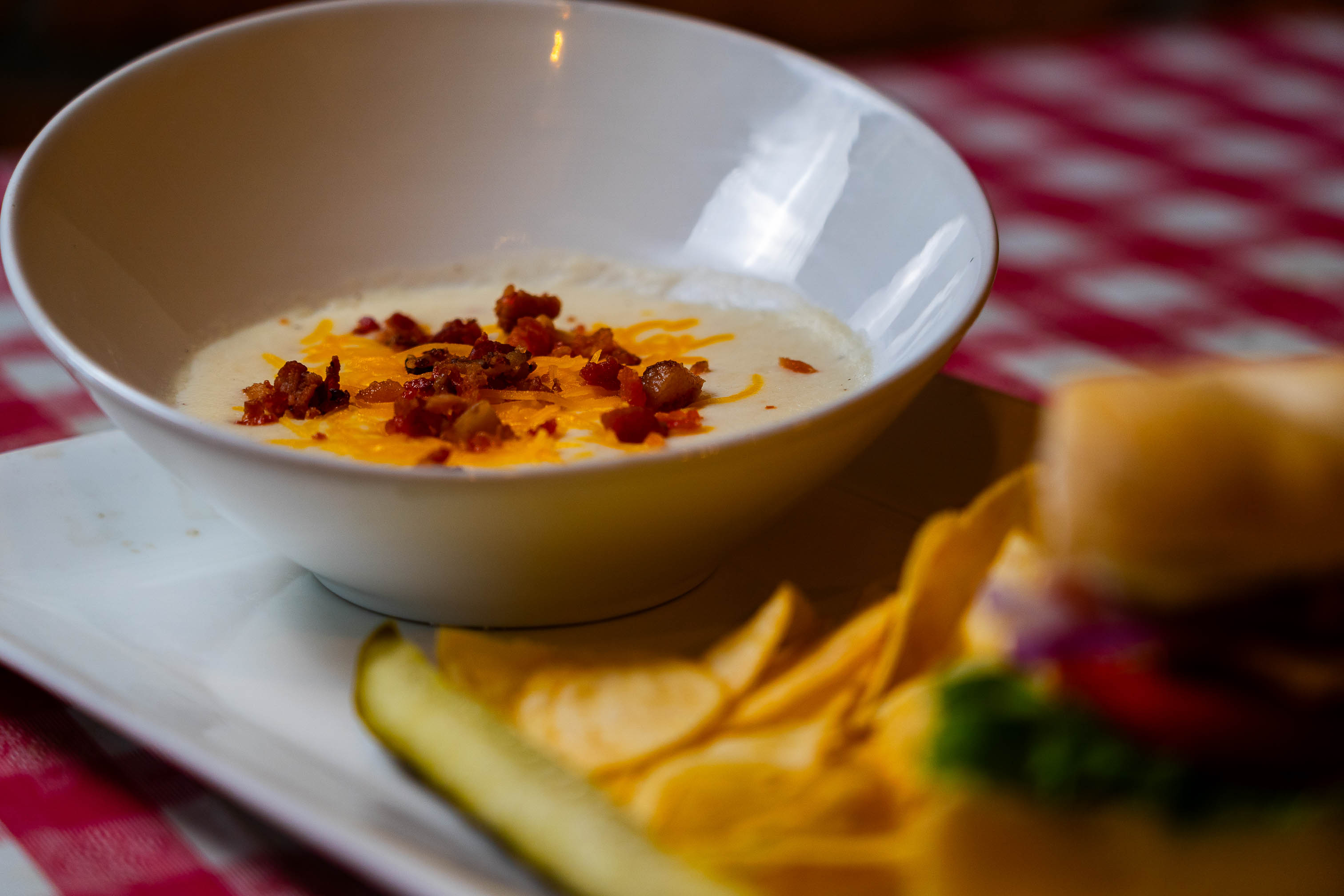 Come warm yourself with our hearty soups. As always we have our Baked Potato Soup. Or you can choose our Soup of the Day: Lumberjack Vegetable. YUM