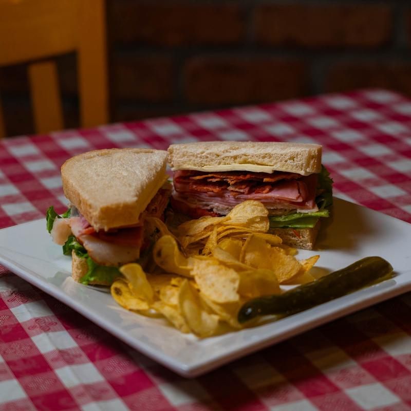 Roast beef, ham, turkey, provolone, lettuce, tomato, red onion, mayo, and spicy mustard served on a French baguette.