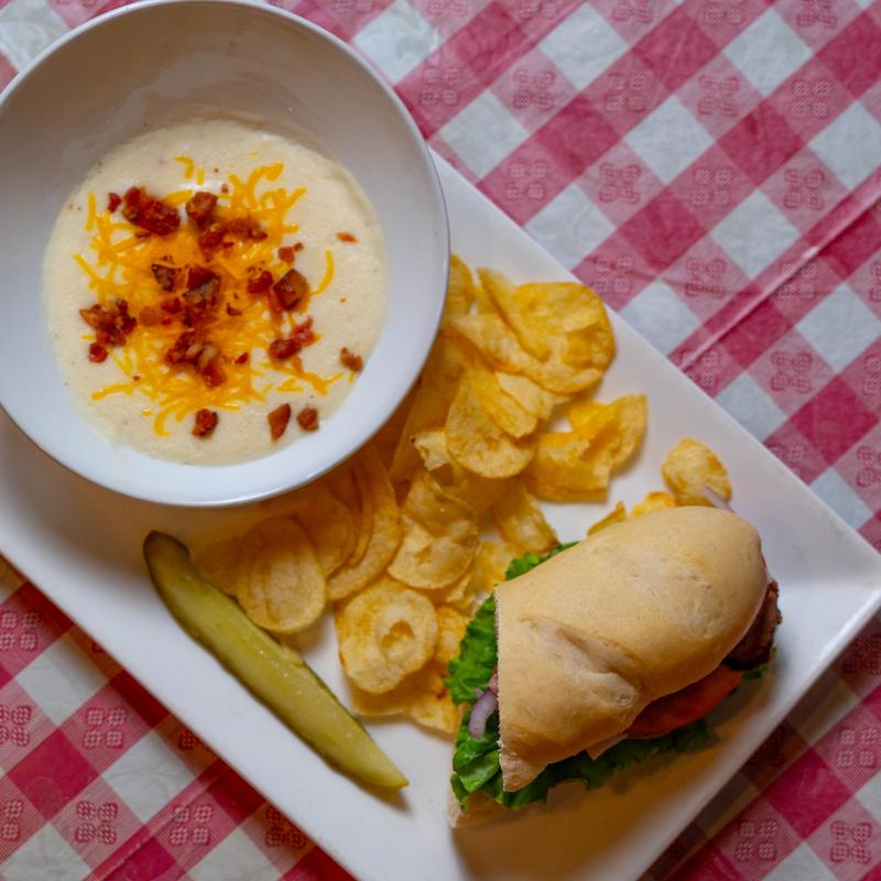 Roast beef, provolone or Swiss, on a French baguette served with au jus.